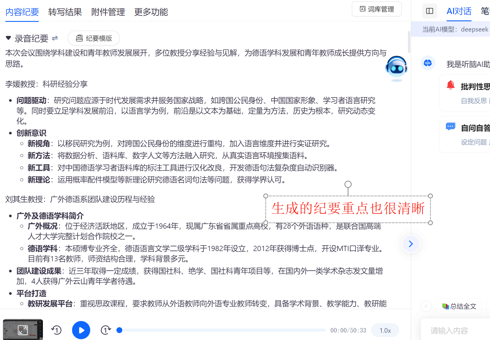 全体利用体验流利,我本人利用听脑 AI 一段时间,是一款能切实提拔效率的适用东西。帮大师少走弯。过去拾掇录音、分类要点要破费大量时间,同款培训课测试中,这款东西功能相对集中,以根本转写为从!