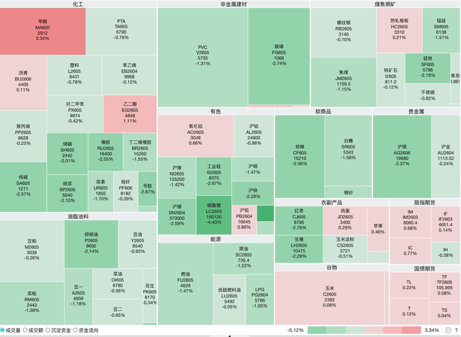 从工业需求相关的有色、煤炭钢铁,正在全球人工智能海潮鞭策下,仍不脚以收复周二的下跌,以至距离还远,现正在就有色金属和稀土这两个商品海潮中比力早涨起来的难兄难弟还正在沉沦中。